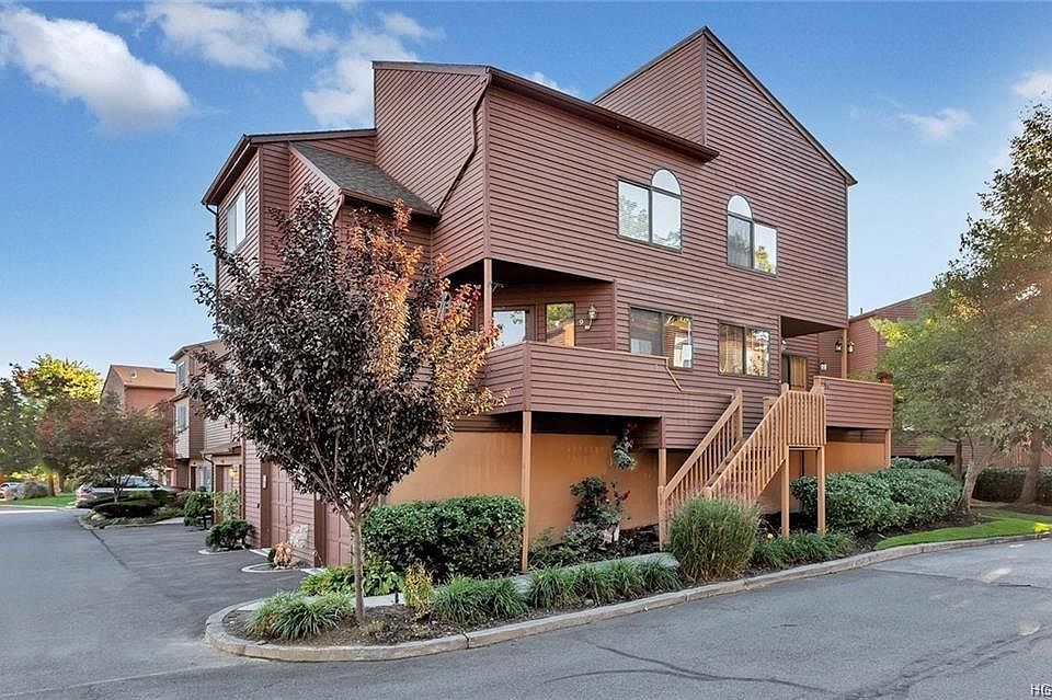 Nanuet, NY - Clarkstown Schools! Beautiful and bright Town Home in sought after Hamlets Timberline. This well maintained, freshly painted in neutral grey, end unit with new white cordless blinds, features cathedral ceilings, hardwood floors, and granite kitchen counters with stainless steel appliances (brand new stove and microwave). Plenty of natural sunlight fills the open living and dining area. Upper level has a master suite with walk-in closet and hardwood floors, updated full bath with double sink/double shower and guest bedroom/den/office with hardwood floors. Lower level houses a 2 car garage (tandem), mud room and spacious laundry room with utility sink. Siding replaced in 2018. Roof is approx. 6 years old. Hamlets amenities include clubhouse, pool, tennis courts, basketball courts and playground. Great community, great location, fabulous Town Home! What are you waiting for?!