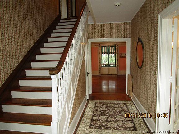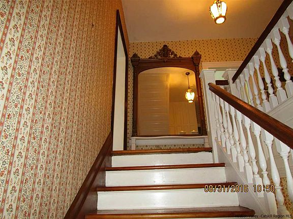 Gracious center hall Victorian with grand central staircase, originally built as the temporary parsonage for the Fair Street Church, and then home to a local bootlegger who allegedly transported liquor through a basement tunnel system. The house retains the charm and sophistication of a bygone era including intricately carved woodwork, hardwood floors, dining room fireplace, original bathroom fixtures including glass door knobs and towel racks and other period details, all of this while incorporating modern amenities. The third floor former staff rooms with bath with claw foot tub could easily be redefined for contemporary usage as additional living or studio space. French doors from the living room lead to a covered porch overlooking the rear garden with cedar twig pavillion designed by a local craftsman. The house with its spacious rooms lends itself to family celebrations each season of the year, and also presents Airbnb potential. This is a rare opportunity to own one of Kingston's grand old houses.