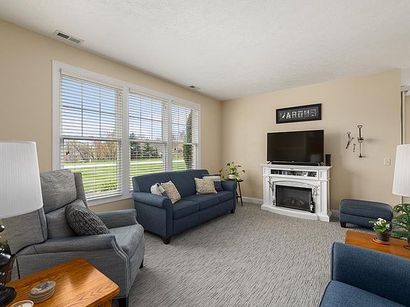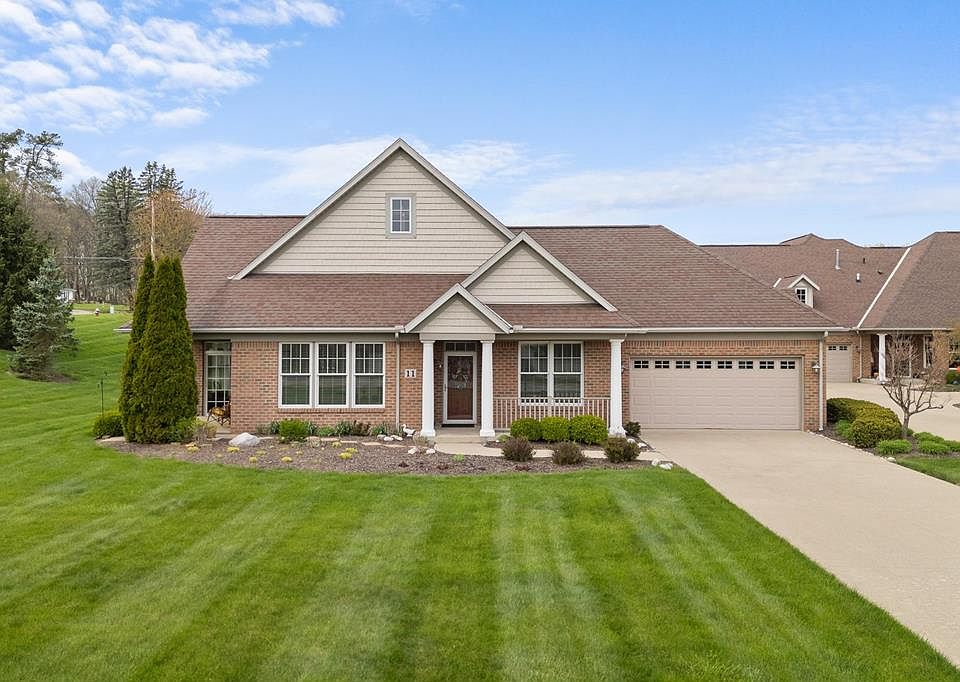 The Gables Condominiums in the Village of Lexington. This condo is in pristine condition, and it shows. Tastefully decorated throughout. Two bedrooms and two full baths with 1355 square feet. Built-in 2005. The large tilt-in vinyl windows bring in an abundance of natural light for a warm and comfortable feel. Custom wooden blinds stay. Gas furnace, central air, and hot water tank new in 2020. The ceilings have been freshly painted. The dining area has a newer ceramic tile floor. Sliding glass door to the covered patio with new floor covering, this patio is a true bonus. Hardwood floors. Entry. Plush carpet is in the living room and both bedrooms. Applianced kitchen with a pantry and plenty of countertop space. First-floor laundry. Water softener stays. Nice storage. Two-car attached garage and a brand new garage door. Concrete drive. Corner location. Take advantage of this opportunity in Lexington. Pets ALLOWED. Shown by appointment only.