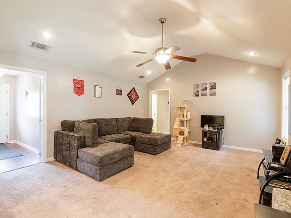 Open concept, 4 bedroom, 2.5 bath home just 10 minutes north of Moody Air Force Base. Desirable split floor plan, spacious bedrooms, and large kitchen with tons of counter space. 4th bedroom is perfect for a play room, craft room, or man cave! Gorgeous vaulted great room and spare bedroom ceilings. Half bath is located off of the foyer and perfect for guests. Master bath features double vanity, Jacuzzi tub, and separate shower/water closet. Vinyl siding allows for easy exterior maintenance. 3.82 acre corner lot provides plenty of privacy with no neighbors on side or behind. Enjoy sitting under the covered back patio and fenced backyard which is perfect for children and pets. Pond and trails at back of property make for adventurous afternoons and weekends. Enjoy the community pool during those hot summer days!