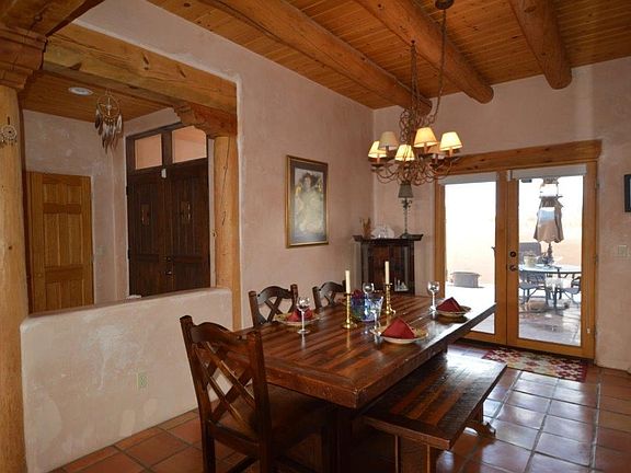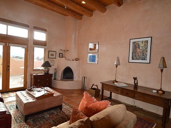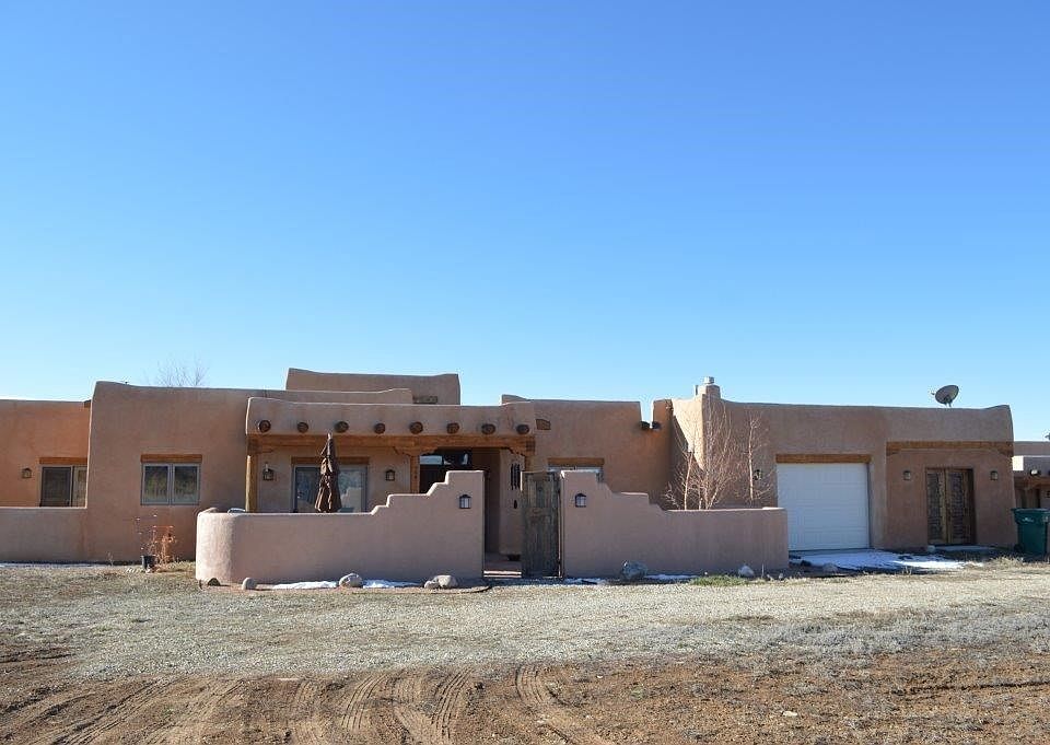 INSPIRED LIVING. Give your life a present and move into this artful, easy living 2,351+/- sq. ft. 3BR/2BA/1CG home and guesthouse with places and views to inspire both inside and out. The current owners, both in the music industry, have an attached, soundproofed recording studio. If your artistic bent leans in other directions, the heated studio with maple floors and separate entrance could be THE place for your tai-chi, yoga, dance, art, a deluxe workshop or even the 4th BR. Plus, thereâs a 1 car heated garage for your Porsche or Prius. (Approx. 500 sq. ft. combined) Are friends and family your inspiration? The fully equipped, separate 490 sq. ft. guest house w/kiva fireplace will delight both. (Of course a vacation or long term rental is an option too). Lots of windows and a high ceiling dominate the living room and provide dramatic views of mountains and sunsets. A sculptured kiva fireplace graces the corner and the diamond finish hand troweled interior plaster throughout is impressive. Entertaining is a breeze with the open, bright kitchen w/stainless, upscale appliances, a generous open dining area, and a walled patio to take it outdoors for dining al fresco and watching the sunsets. The well-designed home features a split floorplan. Escape to the separate master suite through a bookshelf lined hallway, relax and enjoy watching the flames flicker in the kiva fireplace and listen to the quiet. The master bath is spacious and has tub, separate large shower, and walk-in closet. The guest wing has 2 bedrooms (one used now as office/music room) and laundry room w/ sink. The Northside location with easy access off the Hondo Seco Rd. is ideally situated to take in the mountain and mesa views and to take off for skiing, hiking, fishing nearby. After a day on the slopes, you can come back and hop in the hot tub and star gaze then laze by the fire. Picturesque Arroyo Seco is just around the corner and TSV and town are both only a 20 min drive. Do check out this beautiful property with so much to offer. Youâll thank yourself!