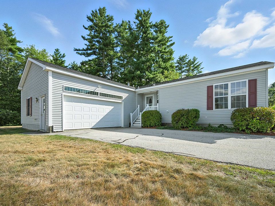 Welcome to Mill Pine Village, a sought-after 55+ community Sandown, NH! This charming home offers true single-level living with a bright, open concept kitchen, dining and living area, ideal for gatherings and everyday comfort. The kitchen boasts abundant cabinetry and granite counters, making cooking and entertaining a breeze. Enjoy the beauty of 3 New England seasons from the sunroom, a perfect spot for morning coffee or evening relaxation. The cozy living room features a gas fireplace for those chilly nights. The layout includes a spacious primary suite with a huge walk-in closet & private bathroom with walk-in shower, a second bedroom, a full bath, and a convenient first-floor laundry that leads to the attached two-car garage and access to lower level. The walk out lower level provides flexibility as an office, den, or hobby space. Other features include central air and a brand new roof! Community amenities include a clubhouse, walking trails, RV parking, and more, all in a pet-friendly neighborhood you’ll love to call home. Offers due Tuesday at noon.