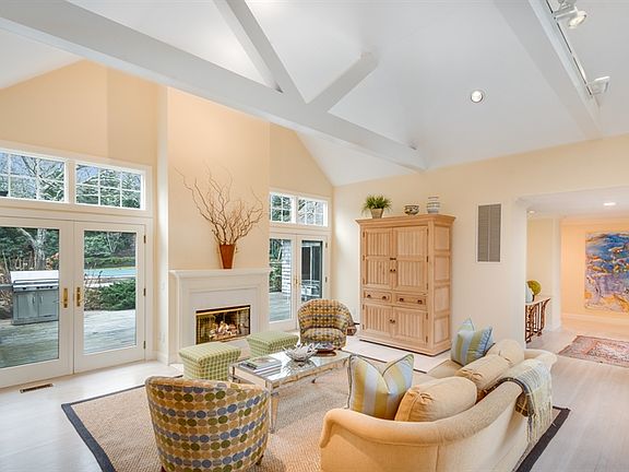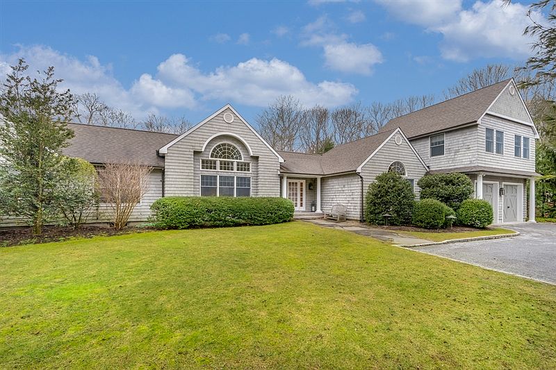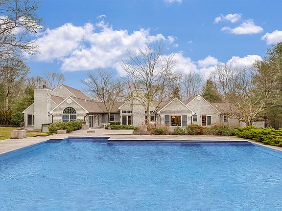 SOLD. A fantastic floor plan is the key stone to this home with a separate ground floor master wing on one side, two en-suites on the other and two more upstairs over the two car garage. Multiple gathering rooms with fireplaces, including a family room with a wet bar and finished lower level with gym. The open eat in kitchen is surrounded by windows, allowing you to enjoy the beautifully landscaped back yard and view the multi-level Ipe decking and 20'x40' heated pool. The white washed floors and vaulted ceilings keep the beach feel going all year round. A space cozy enough for two yet flexible for twelve; there's privacy for everyone in this beautifully renovated and light filled home sitting behind electric gates up on a rise, with a preserve in front of the property, as well as one right behind the property that offers hiking and biking trails. Just a short distance to EH and Sag Harbor Villages as well as Bay and ocean beaches, this is a beautiful place to call home.