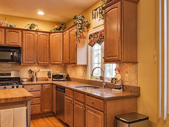 Quality construction throughout this 4 bedroom hip roof Colonial with farmers porch on a quiet country road. Enter 2 story sunny foyer that opens up to hardwood flooring all through first floor with 9' ceilings! Formal LR & DR, large eat in kitchen with SS appliances, maple cabinets with under cabinet lighting, ceramic tiles, granite counters. Kitchen opens into family room with corner gas fireplace and sliders open to 20 x 20 deck, great for entertaining. Lush landscaping with many perennials and flowering shrubs. Upper level has sumptuous master suite complete with spacious walk in California Closet system, full bath with double vanity sinks, Jacuzzi tub and separate rainforest shower, plus bonus 13 x 7 room. 3 additional bedrooms plus full bath with laundry complete the 2nd level. Forced hot air with central a/c. Newer energy efficient tankless hot water system. 2 car garage, plenty of storage, 1.49 acres, convenient location. Move in condition. Don't miss out.