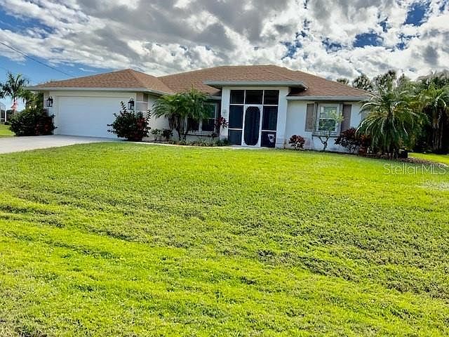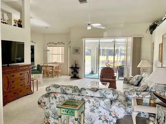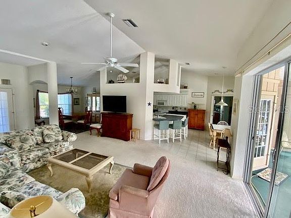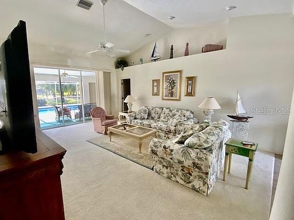 This charming 3 bedroom, split plan, 2 bath, pool home is located in one of Rotonda's most sought after areas with gorgeous golf course views. Located on a quiet cul-de-sac street with a sparkling pool, lush tropical landscaping, and an expansive fairway view. This light filled open floor plan offers a generous great room with a soaring ceiling that flows into a spacious kitchen and dining area. Double pocket sliding doors open to a beautiful lanai and offers the perfect flow for entertaining. Spacious kitchen offers breakfast bar, closet pantry and plant shelves. Serene master bedroom retreat overlooks both pool and golf course, and featuring double closets, dual sinks, and a large walk-in shower. Both guest rooms are on opposite side of the home to offer privacy and share a guest bathroom, that is convenient to the pool area. An oversized guest room could also function as an office or family room with direct access to the lanai and golf course view. Home is being sold furnished. New A/C and pool refinished in 2020. The Rotonda community offers a 165 acre park with scenic walking trails, dog walkers or bike riders. This lovingly cared for home is ready for you to put your touches on it and move in any enjoy the life style you have been waiting for. Just 15 minutes from the gulf of Mexico and 10 beaches on our three barrier islands.