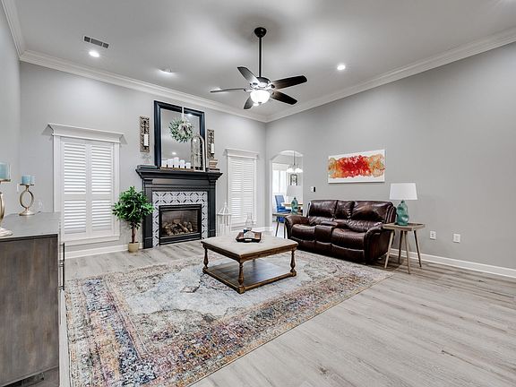 Incredible updated home on .51 acres. Updates include: luxury Vinyl plank floors, paint, quartz counters, plantation shutters, Roof (2022), HVAC (2024 new condenser & coil w/ 10 year warranty), Tankless water heater (2024). Large open living room with Gas fireplace, tall ceilings, & built ins. Separate dining room with large beautiful front facing window. Eat in kitchen offers Quartz counters, tile backsplash, stainless steel appliances including fridge, Cabinets with pull out drawers, pantry, broom closet, floating shelves in dining room. HUGE primary bedroom is on one side that has walk in closet in bedroom. Adjoining bathroom offers TWO additional walk in closets, jetted tub (jets do not work) w/ tile surround, walk in shower, & double vanities. Laundry room outside primary bedroom. Opposite side of house offers two guest bedrooms w/ great closets & full bath w/ double vanity. Don't miss the hidden room off the covered back patio. This heated and cooled room is apprx. 160 sq ft. and not included in the overall sq. ft. of the house. Could be used as office, storage, she shed, or pets. Fully fenced backyard, iron gate, side entry 2 car garage top of this perfect house.