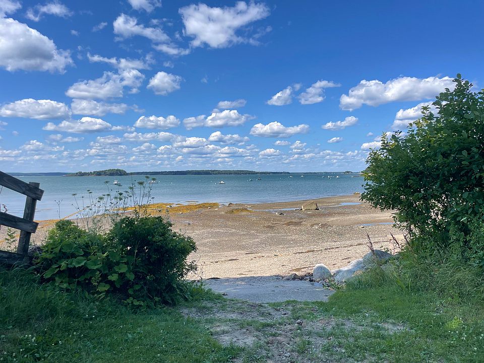 Edgewater Colony, a desirable Year round and seasonal community on west side of Harpswell Neck. A beautiful long, sandy beach stretching from one side of the community to the other. Spectacular sunsets, boating and fishing. Spend endless days, exploring, sunning and swimming in the warm waters of Middle Bay. Just a 2 minute walk to the house sitting pretty on this dry, sunny, level lot. A large deck on the south side entrance. Roomy kitchen, living room, dining area and 2 full baths. Another double deck with French doors off living room and off the extra large primary sweet. What a great opportunity to get into this charming seaside community at an affordable price! Just a little refreshing can make this year round house your home!