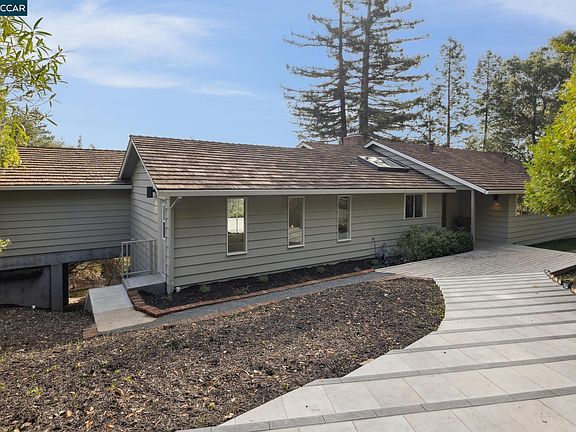 Midcentury Charm Meets Modern Comfort. Tucked away on a cul-de-sac in Orinda’s beloved Country Club neighborhood, this renovated midcentury gem blends timeless style with today’s comforts. Step into a light-filled living room where a wall of windows captures tranquil hillside views and a fireplace sets the tone for cozy evenings. The open dining area is ready for everything from weeknight meals to festive holiday gatherings. The heart of the home, a beautifully designed kitchen, features new countertops and custom cabinetry, making it as functional as it is elegant. Thoughtful designer details are found throughout, elevating every space with warmth and character. The primary suite opens to the expansive deck through French doors, inviting peaceful mornings and quiet nights under the stars. Two additional bedrooms offer versatility for family, guests, or a home office. Both bathrooms are tastefully updated with a modern touch. Outside, the large deck overlooks a tree-lined hillside oasis—ideal for dining al fresco or simply unwinding. Downstairs, a cavernous unfinished basement unlocks endless potential for a separate guest-ready ADU with a full kitchen and bathroom.