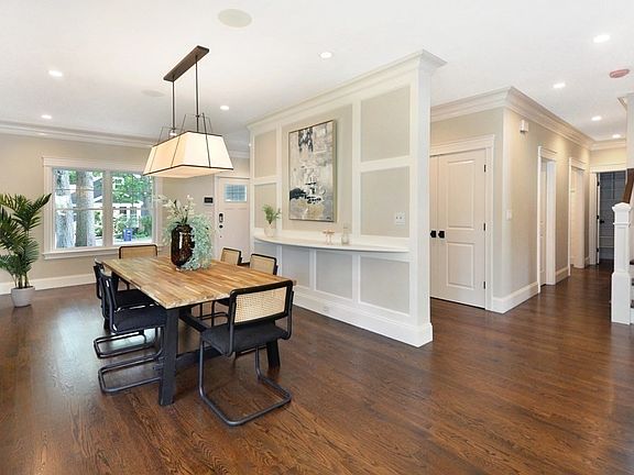 Spectacular brand new construction, impeccable craftsmanship throughout every space, detail, fixture & amenity! Built w/purpose & visual appeal, enter to a spacious layout w/ unique feature wall that creates a defined yet open space. The main level has a gorgeous dining room, stunning kitchen w/ Thermador appliances, double oven, wine fridge, & large island that opens to a family room w/ gas fireplace & sliders to a backyard & patio. There is a convenient half-bath & mudroom that leads to the large 2-car garage. The 2nd level boasts a grand primary w/ double closets, & sleek en-suite, an additional en-suite bedroom, 2 more spacious bedrooms, full hall bath & a laundry room. The 3rd level is a stunning flex space w/ full bath & skylights for a guest room/teen suite/home office. The finished lower level is perfect for a gym or play space with full bath, fridge, and storage. Cutting-edge home technology ensures easy & seamless living. Easy access to Boston and Cambridge.