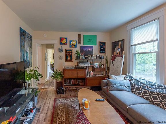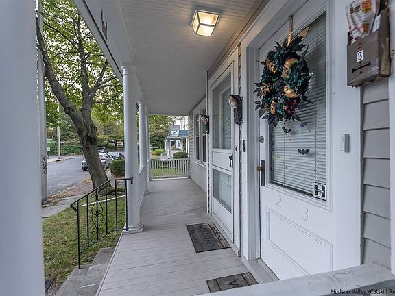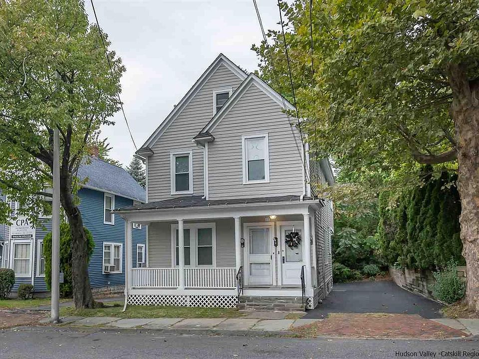 A stone throws away to the Historic Uptown Kingston Stockade District is this 3 family complete with off street parking. Just a few minutes' walk to the center of uptown where you will come across many events, weekend farmers market, all the shops, and some of the best eateries in the area along with the Forsyth park and rail trail. Hard to find 3 family that is fully occupied with rocking chair covered front porch. Downstairs offers a 2 bedroom with 1 full bath complete with living room, eat in kitchen and full bath with shower/tub combo total square feet is approximately 938 sqft. Upstairs has two separate units. Unit 2 is a smaller 1 bedroom with 1 bathroom with shower, eat in kitchen and living room approximately 422 sqft. Unit #3 also has 1 bedroom with 1 bath with shower/tub combo living room and eat in kitchen approximately 544 sqft. The interior has been well maintained. All tenants are long term and would love to stay and are currently on a month to month basis. The tenants pay for their rent and electric as there are 4 separate meters which include a landlord separately. There is also three separate electric hot water heaters. The landlord pays for heat which is natural gas. The exterior was completely repainted last year and there is a black topped driveway that was just recently been resealed. Don't miss out on the attached carport around back which could potentially generate additional income. This is a fantastic location that is close to the bus station, laundry mat and grocery store amongst many other things. Don't miss out on this opportunity.