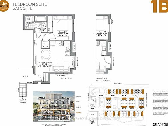 Never Lived in, Brand new corner Unit Townhome on Main Floor above ground, buy now and $ave Big. Model 1B, 573 sq. ft., 1 Bedroom, 1 bathroom, Ungerground Parking. Very good location, short drive to Hwy 400 & 404, walk to Upper Canada Mall, Public Transit, Go Train. All major shhopping including Costco. Parks nearby, walking trails and play area. This is an assignment sale, tentative occupancy is July 18, 2024. Glenway Urban Towns Community built by Andrin.