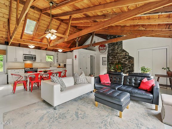 This Stockbridge three season cottage packs a punch!! Enter into the great room with its vaulted ceiling, updated open kitchen/dining/living area and note the wall of windows that overlook the grounds. Family room boasts a classic stone fireplace that opens to the spacious screened porch. Porch wraps around the cottage leading to another dining area. There is plenty of room for gatherings! The cottage has three bedrooms, a renovated full bathroom plus a half bath that includes a stackable laundry. Bonus for this Mahkeenac Heights property is an extra adjoining lot gives a great feeling of privacy! Unsurpassed location: walk to the town's swimming beach at Stockbridge Bowl; minutes from Tanglewood's Lion's Gate; and conveniently sited between downtown Stockbridge and Lenox town centers.