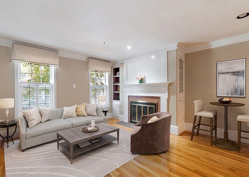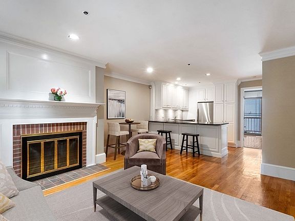 Located in the heart of the gas light district near City Square Park, this spacious and sunny 1BR/1BA condo offers 645 square feet of beautifully finished living space and an ideal open layout. The elegant living and dining area features a wood burning fireplace with handsome white mantel, custom built-ins, large windows with plantation shutters, and crown molding. The living space opens to a spectacular kitchen with white cabinetry, granite countertops, Carrara marble subway tile backsplash, stainless appliances, and a peninsula with bar seating. The spacious bedroom features a custom walk-in closet and egress, via glass slider, to a deck. The updated full bathroom features an extra wide marble topped white vanity, bathtub with marble tile surround, and beautiful wood wainscoting. Amenities include: central air conditioning, in-unit W/D, gleaming hardwood floors throughout, and multiple private basement storage areas, including a large cedar lined closet.