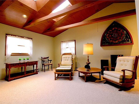 Charming farmhouse located at the end of a cul-de-sac boasts 3 large bedrooms (including ensuite owners bedroom), two full & one 1/2 bath. The wrap around porch is a great place to relax on the porch swing, the addition on the back features a vaulted wood beam ceiling in the family room with skylights, additional full bath, laundry room with upright freezer and access to rear yard. The detached 2 car garage is a dream with additional storage below. A living room, kitchen, den and 1/2 bath are also located on the main floor with 3 spacious bedrooms on second floor and generous storage space in the walk-up attic area. The view of the woods behind the home is so peaceful.