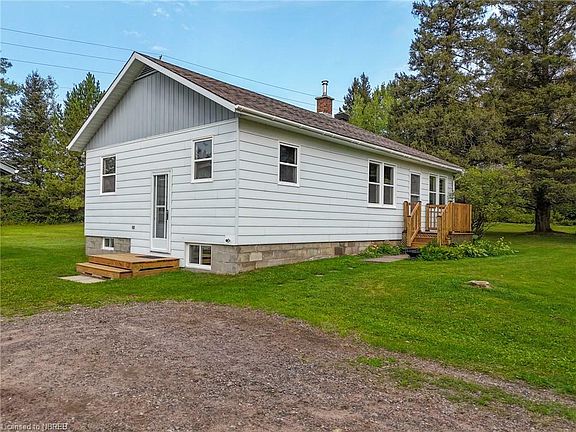 Here's an excellent opportunity to get into homeownership at an affordable price. Located on over an acre of property in Powassan, which has an arena, community centre, grocery store and so much more. This bungalow has seen many upgrades including flooring, windows, decks, fresh paint and more. The main floor has a large open concept kitchen and dining room, large living room, two bedrooms, a den and full bathroom. The lower level has a bedroom and loads of unfinished storage that can be finished as the buyer chooses. Outside there is plenty of space and a large shed that could easily be transformed into a single car garage. Or better yet, build the garage of your dreams. Come have a look today, you will not be disappointed.