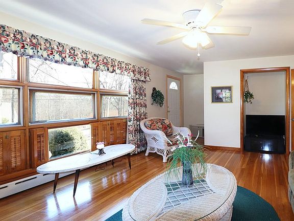Pride of ownership is reflected in this one owner custom built 2 bedroom ranch. Well constructed and meticulously maintained, this home sits on a .65 acre lot, offering a large, private back yard with storage shed and covered patio area. Desirable location with a country living feel, on a quiet, dead-end street, yet close to all amenities .Home features spacious kitchen and dining area, new refrigerator, and lots of cabinetry and counter space. Large master bedroom, with 2nd bedroom also generous in size. Spacious living room, all enhanced by beautiful wood flooring. House is very well insulated for energy efficiency. Immaculate basement with large work bench and shelving affords plenty of storage space. New boiler, approx. 3 yrs. old APO. A cozy breezeway also provides extra living space. Wonderful property, great location. Don't hesitate, call today!