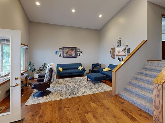 Explore this amazing multi-level home featuring TWO ensuites and loads of room! Open concept kitchen/dining/living area with lake views and beautiful hardwood flooring. Wood pellet stove for crisp fall days. French doors give easy access to partially covered deck and Johnson Lake. Spacious kitchen includes an island and bar seating. All appliances stay including washer & dryer. Upper level family room offers additional entertaining space. Primary ensuite on second level includes versatile features such as a nearby study as well as full bath with double sinks. Second ensuite on third level has 3/4 bath and includes a den area for a comfortable retreat. Lower level includes 3rd bedroom and another office/craft space plus a 3/4 bath. Bonus buildable sublot to west - suitable for future garage or shop. A fabulous property to call home! CHECK IT OUT TODAY!