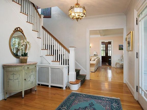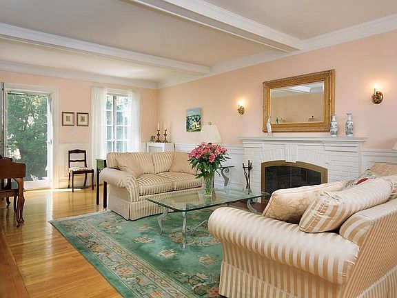 Built in 1925, this stately brick colonial features floor to ceiling windows, wainscoting, moulding, hardwood floors as well as 5 zone heating and 2 zone central air. From a gracious living room with beamed ceiling and fireplace, walk out to bluestone patio with built in grill - ideal for al fresco summer entertaining. The kitchen, renovated in 2005, with granite counters and cherry cabinets, extends into a breakfast room surrounded by windows. Second floor offers four bedrooms, two newer baths with an additional fifth bedroom,bat and extra storage/closet on the third floor. The large two car garage is accessed by decorative paved driveway that also provides ample play area . Located in the Ward School neighborhood, Boston College, Mt. Alvernia school, the Greenline T stop are also nearby.