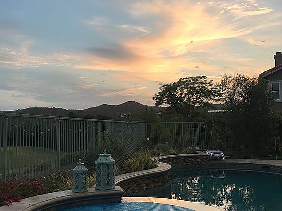 Amazing, panoramic golf course view! Great location located at the end of CUL-DE-SAC on a very private lot, on the North Golf Course in the exquisite gated community of CDC. The carriage lights and barn door style garage doors lead to a brick path entry way. The formal dining and living room have french doors that have access to a completely remodeled backyard oasis with a salt water pool with a Baja shelf, stacked-stone water feature, spa, sitting wall with gas fire pit, built-in gas Dacor Rotisserie BBQ, refrigerator, built-in trash can, stainless steel ice tub and granite topped seating area around a glass burning fire ring. Gorgeous unobstructed panoramic golf course and Mountain View’s. There are two planter boxes for gardening and Belgard pavers surrounding the pool scape. The spacious, newly remodeled kitchen has a granite island, with a built-in maple wood dining table for six. The granite island has a six burner, gas cooktop and ceiling mounted cooktop vent, and an under-the-counter, built-lin microwave, slide out trash can and spice rack. All new stainless steel appliances include a dishwasher, double oven, and built-in refrigerator. Built-in dual recycling trash cans, Kohler white porcelain barn style sink, modern lighting, cabinet garage doors to store counter appliances out of site and plenty of storage all around! Remodeled bar with stainless steel sink with disposal, wine and beer refrigerator with glass front storage cabinets, wine cubbies and stemware glass holder. The laundry room Is also newly remodeled with beautiful grey cabinetry, stainless steel utility sink and pull out shelving for laundry supplies and new light fixture. Updated travertine at the entry and upgraded baseboards throughout with rich, handscraped wood flooring. All Plantation shutters throughout, The 4 BD, 3.5 BA home offers a separate family room, dining room, living room and bonus room with mini-bar that includes a sink, refrigerator and glass decorative cabinet fronts. Other notable features upstairs include a Jack and Jill style bathroom includes a new sink, mirrors, granite top and hardware. The master suite includes a remodeled balcony patio overlooking the golf course, a fireplace, with a dual set of barn doors leading to a walk in closet with new wardrobe shelving system. Walk-in shower, with oval, sunk-in tub. There are ample walking trails, close access to the golf course and country clubs.