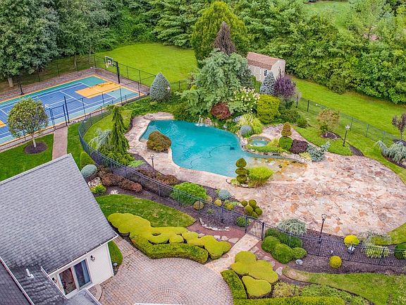 Beautifully designed custom 3 sided brick home privately tucked away in Holmdel's coveted neighborhood ''The Gables''. An impressive 2story foyer showcases the grand stairway, elegant archways, custom millwork, newly refinished hardwood floors & fresh neutral color palette ready for you to call it your own! Formal Dining Rm is complete with temp controlled wine cellar perfect for entertaining & Formal Living Rm has handsome bay window & beautiful moldings. French Doors lead to the private Office ideal for today's lifestyle. The Gourmet Kitchen & separate wet bar opens to the stunning 2story Great Rm boasting soaring ceilings & sensational palladian windows offering views of the resort-style grounds. A dual sided gas fireplace w2/story mantle is the true focal point of this remarkable rm. The luxurious Master Bedroom Suite is complete with tray ceilings, two walk-in closets, spacious sitting/dressing area & well-designed Master Bathroom. 2 en-suite bedrooms, updated hall bath & 2 additional bedrooms complete the upper level. Meander down the back stairway to the sun-filled Conservatory which offers sliding glass doors to your outdoor retreat. The paver patio leads to the well-designed outdoor barbeque area & fenced in zero-entry gunite pool convenient for all of your outdoor gatherings. Amongst the professionally manicured grounds you will find the full sport court perfect for at home recess! A sensational offering of timeless elegance & quality design - with nothing to do but unpack! All within close proximity to NYC transportation & beautiful beaches of the Jersey Shore. 2020-12-11
