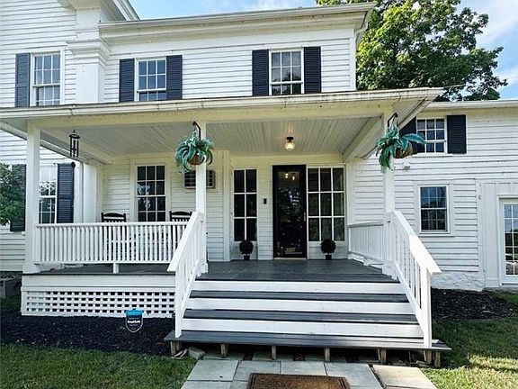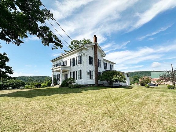Prime location with easy access to schools and natural attractions, and a beautiful patio for outdoor socializing! This charming 6-bedroom 4-bath updated Farmhouse is a rare find. The home is only a short distance to the natural beauty of the Finger Lakes Region, and the proximity to Corning makes for a low-travel commute. Within, the residence is rich with comforts, beginning with the stunning entryway. Beneath fashionable lighting, Oak hardwoods gleam in the living areas, kitchen, and bedrooms. The multiple fireplaces impart a cozy feel to the atmosphere, and constitute a couple of choice spots for conversation or solitude. The ensuite primary bedroom is well-designed and peaceful. In addition to the convenience of the private bathroom, you will find plenty of walk-in closet space to let your wardrobe breathe. In the kitchen, surfaces, cabinetry, and appliances are a stew of savory meal possibilities. Exceptional butcher block countertops are in the classic island configuration, maximizing workspace and flexibility. The large yard provides endless opportunities- many large beds in place for gardening & plenty of additional outdoor space to bring your own ideas!