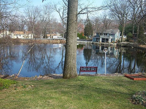 Sit out on your deck, patio or backyard and admire the peaceful, quiet lakefront setting. Gourmet Kitchen with granite, maple cabinetry and new state of art appliances. 3 bedrooms, 2 bathrooms. Beautiful landscaping with vintage accents add terrific curb appeal. H Basement has never flooded and when homeowner purchased home Flood insurance was not required. Non mandatory yearly fee, however, you must be a member to use the lake and other facilities.
