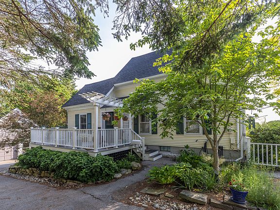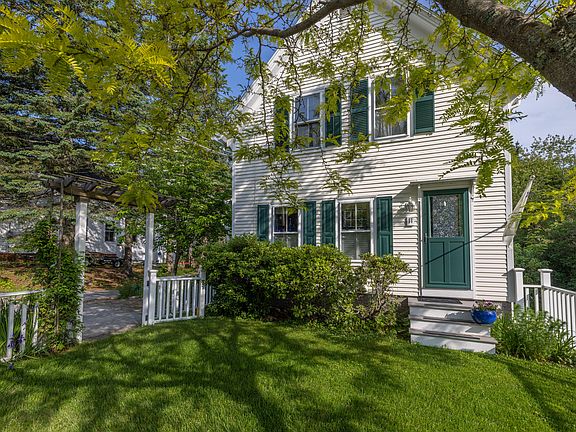 This quintessential village farmhouse has been loving cared for with a recently new kitchen, baths, painting a whole house generator and newly designed laundry area. Enjoy the den with a working fireplace for cold winter nights, the convenience of a thoughtfully designed kitchen and classic features including wood floors, architectural column décor and custom touches throughout. Added bonus room upstairs off second bedroom that works great as a nursery or office. Located just a half mile walk to the village coffee and sandwich shops, restaurants. local corner store and the harbor. This quiet side street is convenient yet tucked away off the main roads. The walkout basement is great for storage space and the oversized garage lends itself to all kinds of shop or garden activity. For year round or summer living, this distinctive gem is your open door to Camden.