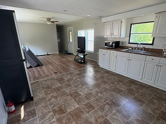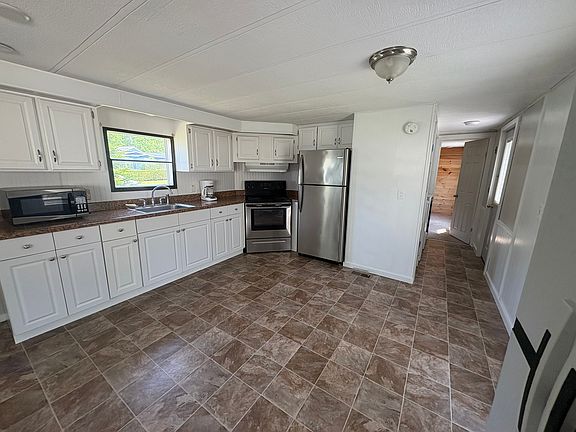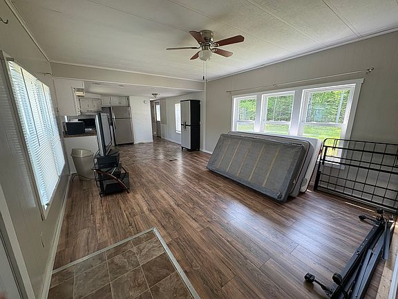 Located in Milford, this freshly updated 3-bedroom, 2-bath mobile home sits on its own private land not in a park and offers both privacy and convenience. The home features a spacious open-concept kitchen with updated white cabinetry, stainless steel appliances, and plenty of natural light. The master suite includes its own bathroom, a stylish wood accent wall, and plush carpeting throughout the bedrooms. Enjoy the outdoors from the private back deck surrounded by green space and trees, perfect for relaxing or entertaining.