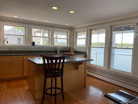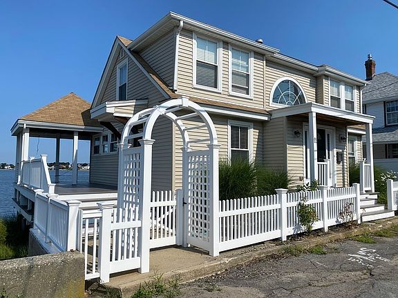 Fabulous Views of the sunset over the bay! Just one of the reasons "Why you will love living here". You'll be the envy of family & friends & become the destinantion place for special & everyday events. Greeting family & friends at the front door they'll be awed by the view through the great room & the wall of windows to the bay! Guests will gather round the family chef in the island kitchen & the party will flow out onto the wrap around deck! Rent a dock they will attach it to your deck then you can walk right out to your boat! Go fishing off your own deck! Originally built in 1963 renovated 2015, wood flooring throughout. First floor: open flowing spaces to place your furnishings to suit your lifestyle. Second floor: full marble and tiled bath w/large walk in shower accessible from the hall the & king sized master bedroom, large enough to create a sitting area right by the glass doors leading to the balcony spanning the width of the house; 2 modest bedrooms, 1 w/access to balcony.