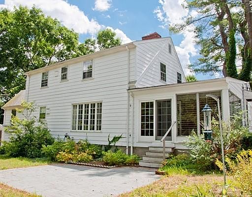 Quality built full shed Cape Cod with unique floor plan. Charming country kitchen leads to dining room with fireplace. Spacious living room is loaded with recessed lighting and built in shelving. This four bedroom features two master bedrooms, one on each floor! Beautiful sunroom offers seasonal views of private backyard. Filled with natural light, gleaming hardwood flooring and custom details, this property should not be missed. Set on a large lot on a side street, additional amenities include: two car detached garage with work area and full basement with potential to expand! Location is close to schools, major routes, country club and more!