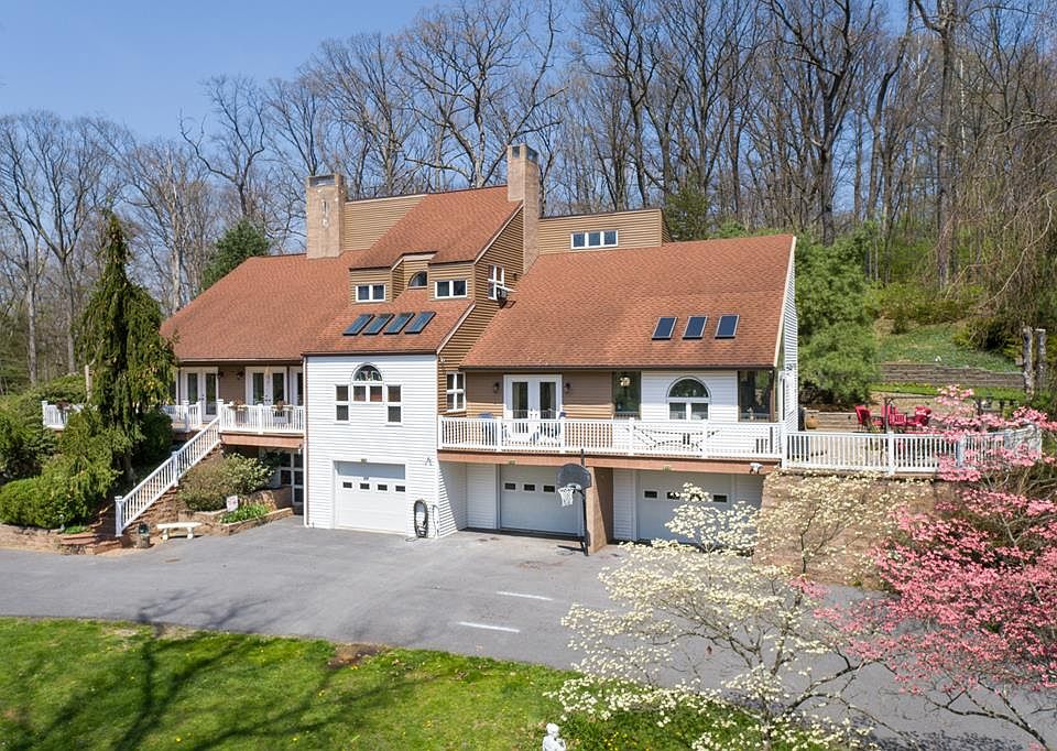 An extremely unique home amongst the treetops! This beautiful home has many unique architectural features and comes complete with 5 bedrooms, 3 full baths, 2 half baths, various living spaces, loft area, and partially finished basement. Enjoy spending time in the great room with large propane fireplace, care for houseplants in the large sunroom, or show off your cooking skills in the large kitchen. Many updates throughout, with potential to tailor the home to your style. Quite a large home and many areas to enjoy! Head to one of the two patios in the summer evenings or relax on the wrap around deck overlooking the woods. 3 large garage bays and many outdoor storage solutions.
