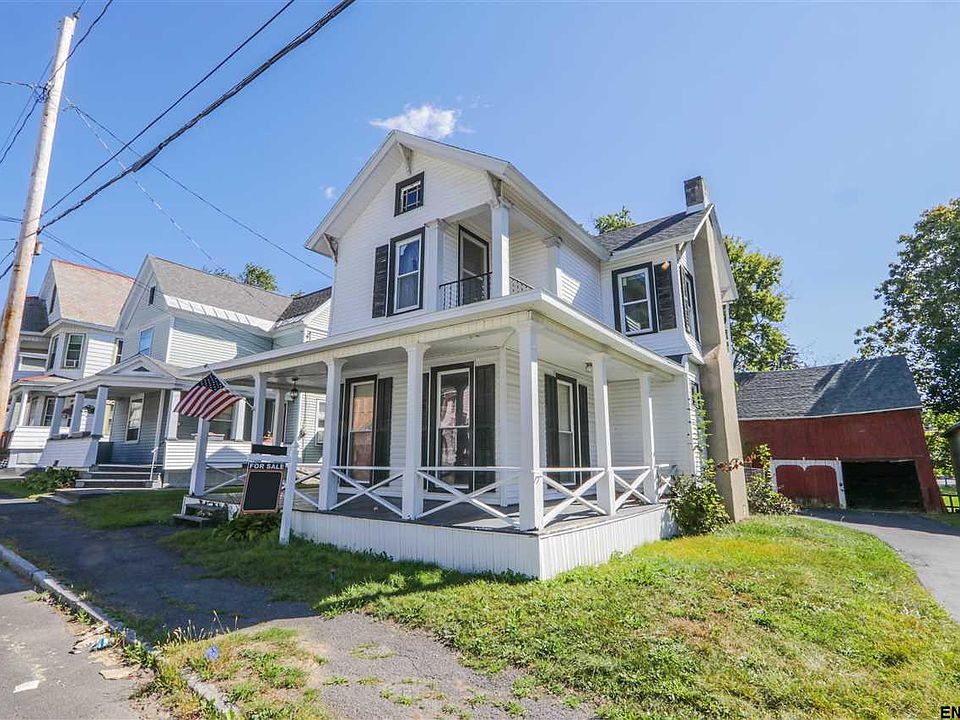 Spacious 4 bedroom 2 bath home. Beautiful wrap around porch in the front and a deck in the back. Fenced in yard. Barn used for garage with heat and electric. ** sold as is**