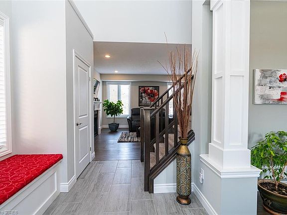 Stunning 2 storey home in Glendale West, Hayhoe built in 2016 on a good sized lot backing on to a ravine. An under 15 minute drive to the 401. 4 bedroom, 3.5 bath with an office! A covered front porch welcomes you home. Upon entry is a spacious foyer with built in bench seat and 2 closets. Main floor office is conveniently located at the front of the house with lots of natural light. The living, dining and kitchen is open concept and decorated beautifully. The kitchen is a chef's dream with white cupboards, island with quartz counter, under cabinet lighting, corner pantry, back splash and gas stove. Deck off of the dining is 28' x 14' with a gas line for the BBQ; walk down to the 5 person hot tub (2017) on a cement pad. Main floor laundry and mudroom just off the double car attached garage. The second storey is home to 3 bedrooms, main 4 piece bath with the primary bedroom having an ensuite and walk in closet. Basement level is finished with a Recreation room (Rough in for gas fireplace) with large windows, the fourth bedroom, 3 piece bath, cold cellar and 2 storage areas. Here is your chance to have pride of ownership you will not grow out of in a great school zone!