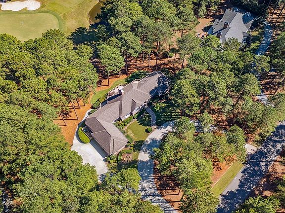 Beautifully positioned on a private, oversized lot near Pinewild's clubhouse, this custom 5,100+ sq ft home offers exceptional comfort and thoughtful design. A transferable Pinehurst Country Club membership, available to the buyer with 50 percent off the initiation fee, provides a rare opportunity to enjoy one of the region's most sought-after clubs. The main level features two spacious living areas separated by a double-sided fireplace, a sunroom, and an open kitchen with custom cabinetry, quartzite countertops, and white oak floors, all oriented toward sweeping golf views of the Magnolia Course's 18th hole and pond—arguably the best view in Pinewild. A large upper-level deck and lower-level covered porch create inviting outdoor spaces to relax or entertain. Notable upgrades include a dedicated well for irrigation and car washing, built-in speakers, an encapsulated and conditioned crawlspace with dehumidifier (March 2025), and new HVAC units (2023/2024) with humidifier; the HVAC systems carry a transferable 10-year parts & labor warranty. The home offers **four bedrooms—three on the main level and one on the lower level—**along with three full baths, two half baths, a recreation room, office, abundant storage, and an oversized three-car garage with epoxy flooring. This property blends luxury with livability. For a complete list of upgrades, see the feature sheet. Within the gated community of Pinewild, residents enjoy a peaceful setting with access to Pinewild Country Club (club memberships available), just minutes from the Village of Pinehurst.