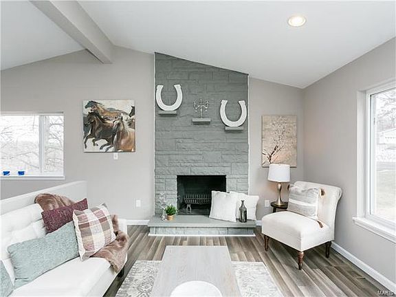 This gorgeous mostly all brick home is what you've been looking for! From the moment you walk through the front door, you will be stunned by the bright, beautiful, vaulted floor plan. The great room is open to the kitchen and dining area and includes a stone,floor to ceiling wood-burning fireplace.The kitchen offers a serene view of the over 1/2 acre backyard with mature trees. Upstairs is complete with a master bedroom suite,plus three additional large bedrooms and a huge hall bath with beautiful new tile. A fifth bedroom,on its own separate floor,offers privacy and can be utilized as a bedroom, office/den, playroom or whatever may suit your needs. In addition to three levels of living space, there is a walk out basement with lots of additional room for storage. This home was fully rehabbed and features all new windows,roof,furnace and a/c,water heater and much more. All of this,plus an oversized 2 car garage and storage shed. Conveniently located just minutes from Gravois Bluffs.