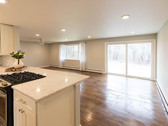 Completely updated and move-in ready single-story home in a great area of South Dartmouth. Three bedrooms, 2.5 bathrooms, large kitchen, open concept with hardwood flooring throughout. This house has a finished garage and basement. Amenities: Quartz counters, recessed LED lights, new stainless steel appliances, all new doors and Harvey windows throughout house, cedar impression vinyl shingles on exterior, brand-new high efficiency heating system, town water and sewer, and natural gas. The basement is approximately 1000 sqft space not included in the living area. It is insulated, drywalled, has recessed lights, vinyl lock-in flooring with its own heating zone. Two-car garage is attached to the house and finished with drywall and recessed lights throughout. Lot 120 included in sale. Seller owns the vacant lot next door on the right side of the property which can be sold separately.