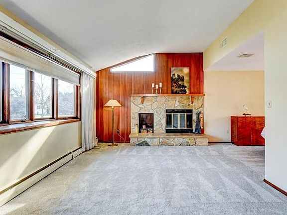 Welcome to this lovely 3 bed ranch sitting on a pristine lot in Country Club Estates. As soon as you walk in you see the large bay window letting in plenty of natural light and get flooded with that brand new carpet smell! The living room is sizable and features a vaulted ceiling and a wood burning fireplace. The living and dining room were expanded years ago to offer more living space in this home compared with the same original model in the neighborhood. The kitchen is open to the dining room and has a ton of cabinet space, Corian counter tops and a window just above the sink. There is a first floor laundry room and also access to the impressive back yard. There is a large sun room the leads out to a multi tiered deck. The bedrooms all have hardwood flooring and updated windows. The master bedroom has a full en suite complete with a stall shower. There a full, unfinished basement with plenty of storage and room to finish if you desire and the AC was recently replaced.