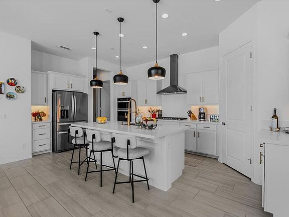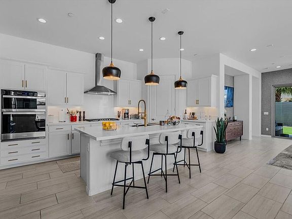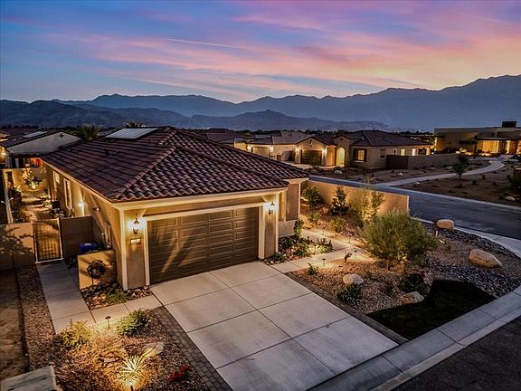 Better than New! Gorgeous Expedition Model - December 2023. Situated in unparalleled location near Showroom Models in the 55+ Community of Del Webb. Breathtaking Mountain & Scintillating Sunset Views!. Soaring ceilings, 2 bedrooms, 2 baths, + office with Great Room Concept. Chef's Kitchen w/ upgraded quartz counters, island farm house sink, stainless steel appliances, under cabinet lighting, walk-in pantry, & dining bar w/ pendant lighting. Tile Plank Flooring throughout the home + generous use of recessed lighting.The Sumptuous Primary Suite easily accommodates a king-size bed, 2 large night stands, & sitting area + automated blinds & custom draperies. The Primary Bath includes a dual vanity, quartz counters, shower stall w/ bench, linen closet, vanity lighting, & spacious walk-in closet w/ customized closet organizers.Guest Room offers custom shades & draperies, + large walk-in closet. The Guest Bath features quartz counters, large tub & shower combo, + linen closet.Laundry room is bedecked w/ custom cabinetry, under-mounted lighting, large soaking sink, & pedestal Samsung washer & dryer.Smart Home - components in laundry room, wired for surround sound & whole house programmable Wi-Fi.Spacious Home Office near entry.2 car garage--epoxy flooring, tankless water heater, & whole house water conditioning system. Owned Solar Panels.Prime Location is only steps to Resort Style Amenities.Come enjoy the Ultimate Desert Lifestyle