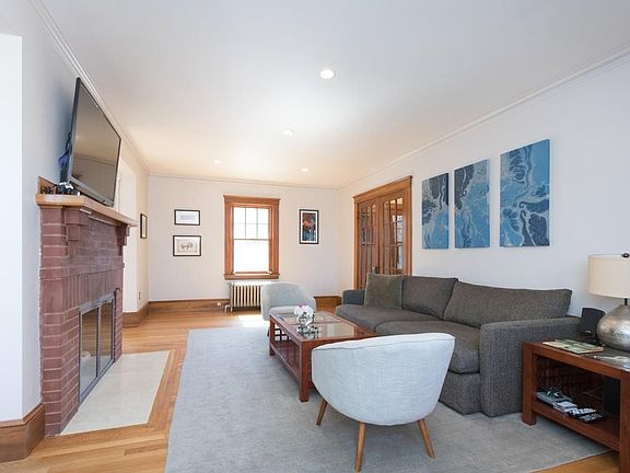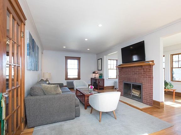 Immaculate restoration inside and out! You will love the layout of this 1920's Gambrel Colonial with its sense lightness and calm throughout. Small details make all the difference in a quality renovation and they are apparent in every nook in cranny from the finished basement laundry room to the wood trimmed bathtub in the full bath on the second floor. A bright and spacious kitchen has an innovative layout with large island great for entertaining and opens to the dining room. The front-to-back living room with fireplace flows naturally into the sunroom providing space for family as well as personal retreat. The second floor has three bedrooms and a full tiled bath with beautiful finishes. A walk-up attic is great for additional storage or could be imagined as a future finished space. A French door opens to a rear deck and overlooks a large, fully fenced back yard. There is plenty of parking and a two car garage which sits at the corner of the lot, maximizing yard space.