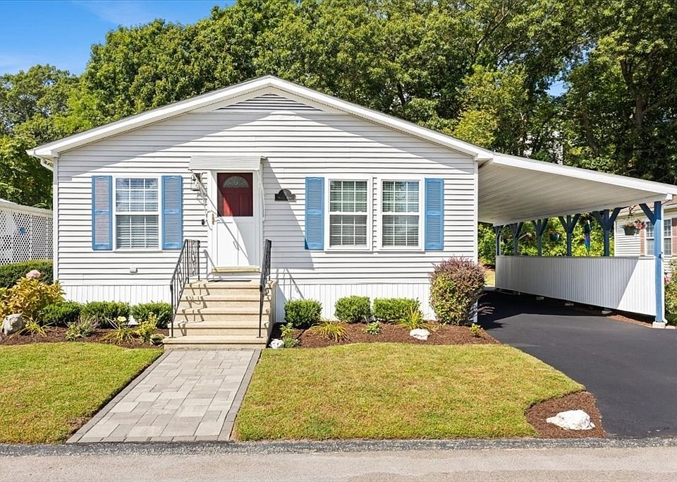 Welcome to Sandcastle, one of Attleboro’s most desirable 55+ communities! This well-maintained 3-bed, 2-bath home underwent a major renovation in 2022, including all-new flooring & carpeting, two beautifully updated full bathrooms, fresh interior paint & a stunning stone patio & front walkway. The bright eat-in kitchen offers granite countertops & island seating, while the spacious living room boasts vaulted ceilings & tons of natural light. Step outside to your private backyard complete w/ irrigation, a composite deck, stone patio & storage shed. Enjoy central air, 1st floor laundry, a covered carport & a low-maintenance exterior w/ vinyl siding & young roof. The HOA covers taxes, water, sewer, trash, road upkeep & amenities including a clubhouse, pool, pond w/ walking paths, pickleball courts, fire pit, & BBQ area. Residents also enjoy a library, fitness room, billiards, bingo & a full calendar of HOA events & trips! Pets allowed with park approval.