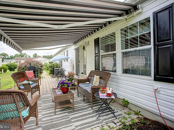 Embrace low-maintenance luxury in this beautifully designed manufactured ranch home, offering 2,128 square feet of spacious living within the vibrant Shippensburg Village 55+ adult community. This 3-bedroom, 2-bath residence blends comfort and style, featuring a bright living room, a cozy family room with a stone gas fireplace, and a dedicated office for work or hobbies. The primary suite is a true retreat, boasting a large walk-in closet and a luxurious bath with a soaking tub, separate shower, and dual-sink vanity. The expansive kitchen, complete with a central island, flows seamlessly into formal and informal dining areas, ideal for entertaining or everyday meals. A separate laundry room adds convenience, while the inviting side patio with an awning and a large shed with a covered porch provide ample outdoor space for relaxation and storage. The room measurements are an approximate guide, buyers to verify. The monthly community fee of $300 includes your sewer, trash, and with optional lawn and snow care included with your monthly rent for $50 more, you can spend less time on outdoor chores and more time doing what you love. Enjoy the best of 55+ living in this thoughtfully designed home, perfect for your next chapter!