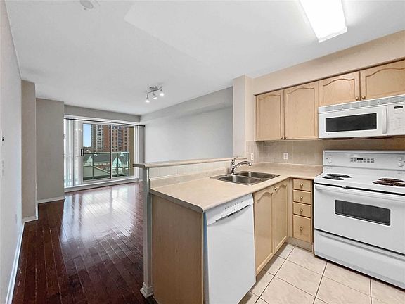 Wow! Bright And Spacious 1-Bedroom Unit With Oversized Balcony! This Condo Features Hardwood Floors, Kitchen With Breakfast Bar And A Large Bedroom. Huge Balcony With Unobstructed Views. Low Maintenance Fees Are All Inclusive: Heat, Hydro, Water, Parking & Locker! Building With Security Gatehouse, Visitor Parking, Gym, Party & Recreational Room. Perfect Location Near Subway, Restaurants And Other Amenities.