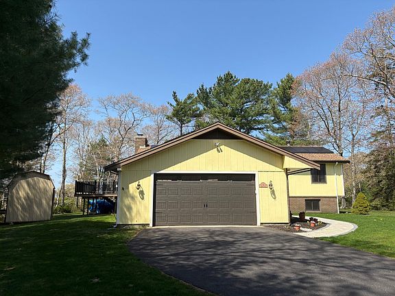 Nestled on a spacious corner lot in Pocasset Hills, this beautifully updated home offers the best of coastal living, just minutes from the Bourne Bridge, Four Ponds trails, beaches and golf. Inside, enjoy an open layout with hardwood floors, stainless steel appliances, farmhouse sink, center island and French doors leading to a large deck and garden, ideal for entertaining. Upstairs features a primary bedroom, two additional bedrooms and an updated bath with a soaker tub. The lower level includes a second primary suite with walk-in closet, office, bonus room, and a renovated bathroom with custom dual-sink vanity and walk-in shower. Energy-efficient features include: split-system heat pump and HVAC, high-efficiency natural gas boiler, solar panels (lease to be assumed), and Renewal by Andersen windows. Set on over 1/2 acre, enjoy a fenced garden, fire pit, and outdoor shower. With beaches, trails and golf within 1.5 miles, this home blends comfort, efficiency and location.