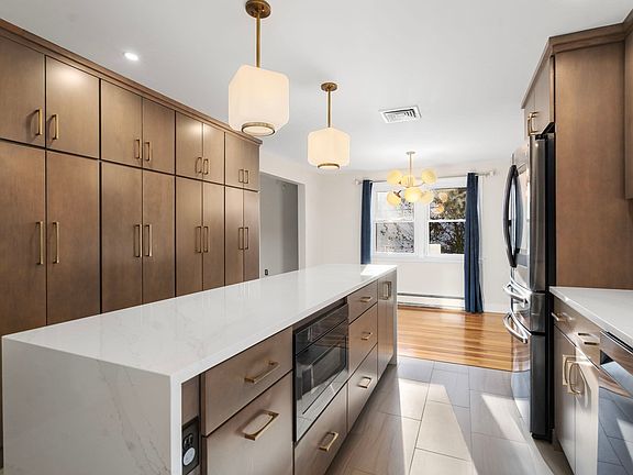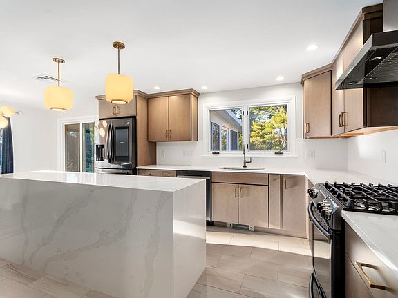 Beautiful three bedroom split level with new kitchen! Gorgeous cabinets, tile floor, quartz island and countertops along with brand new stainless appliances. All hardwood floors throughout, newer windows, laundry, lower level family room and garage. Bright sunroom off the dining area with gas stove that leads to deck down to a private level yard with shed. Central air conditioning and gas heat. Convenient location on a cul-de-sac in Framingham Centre close to Village Hall, schools, shopping, highway & major routes. Tenant responsible for all utilities, water and snow removal. Small pets negotiable w/ restrictions. Landlord will provide lawn maintenance. Must have excellent credit, employment verification and references. No college students.