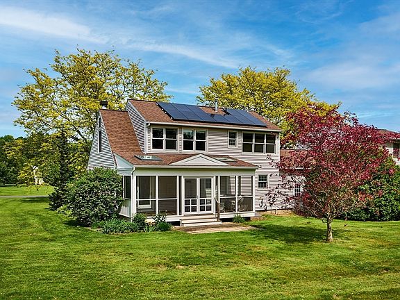 Multiple offers in hand, HIGHEST AND BEST due 5pm Tues 6/3. This rare and spacious 3-bedroom, 2-bath condo duplex offers the feel of a single-family home in a bucolic setting, yet conveniently close to the highway and area shopping. With hardwood floors throughout and a sun-filled interior, the home features updated kitchen with crisp cream cabinetry, quartz counters, tile backsplash, and an open flow to the dining room. From there, step through glass sliders to an enormous screened porch with skylights and ceiling fan, and then out to a patio and expansive yard. The main level includes a bedroom, full bath w/ tile floors & glass shower, laundry room, and spacious living room with fireplace & built-in shelving. Upstairs, are two spacious bedrooms, each featuring a wall of windows overlooking the yard, ample closet space, and a second full bath. The living is easy with full basement, attached garage, gas heat & central AC (2023), heat pump water heater, and owned solar panels. Pets OK!