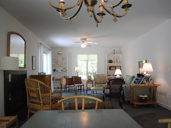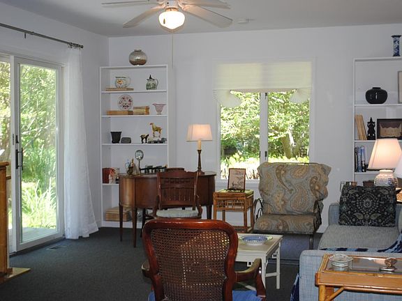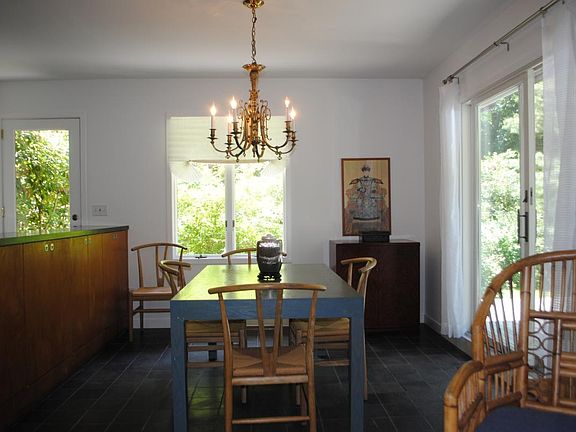 This very private contemporary ranch has central Air, three bedrooms (one is a Master Suite), two full baths, a big living/dining room with a fireplace and a kitchen with all appliances. There is a big deck for outdoor dining and entertaining. The gardens are lush, lovely and filled with an abundance of flowers.
