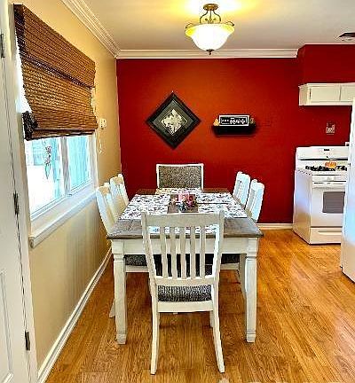 Hurry to this rare find! This cozy Ranch is set back with great curb appeal . No steps ! Cute covered front porch by front door for sitting area to enjoy the outdoors on this quiet street. Perfect open floor plan to host holiday gatherings and celebrations. Crown molding, recessed lighting in kitchen, living room features crown molding, laminated floors living room-dining room-kitchen and hallway, pull down attic stairs to insulated attic (great for storage) freshly painted and move in ready to welcome its next owner !!!
