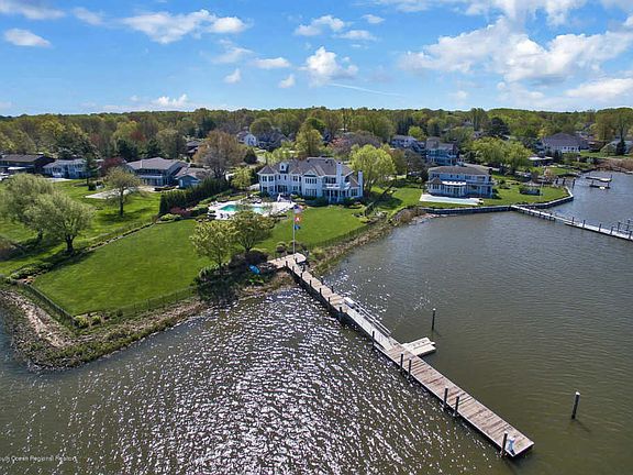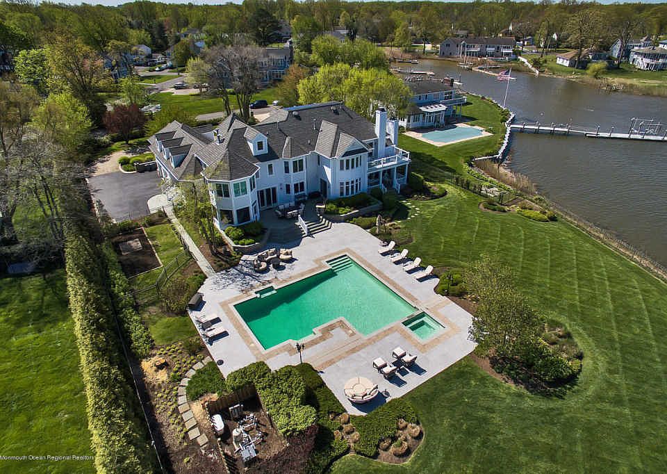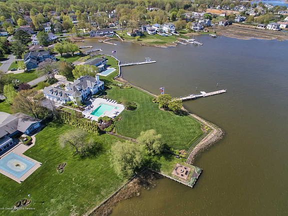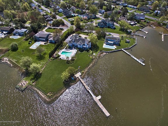 A rare opportunity to enjoy the ultimate waterfront lifestyle. This spectacular Martelli custom built home, situated on a 1.3 acre peninsula, has a 180 degree panoramic view of the BlackBerry Bay and Shrewsbury River. Entertain with family and friends while enjoying the sunsets illuminating the bay around the 40 x 20 ft Pebble Tec concrete pool with attached spa. The pool is surrounded by a newly laid natural tile and Belgium block patio. For the boater who wants to house his vessel for easy access to the Shrewsbury River, a 60ft Epay wood fixed dock and a 60 ft. Epay floating dock complete with running water, electricity and bubbler system is steps away on the expansive property. Through the oversized double front doors, one is greeted by travertine and marble flooring throughout its