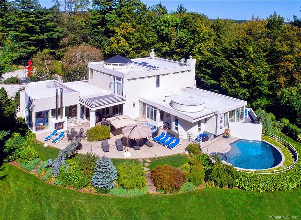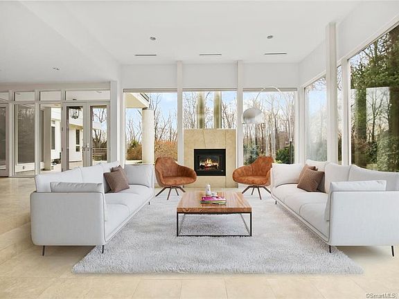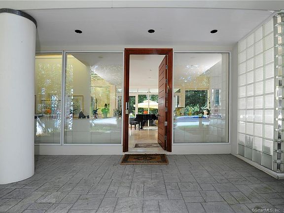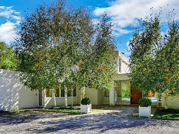 Stunning contemporary steel framed home, with open floor plan, 24' soaring ceilings and walls of glass, welcomes you the moment you step inside. Formal LR, DR, FR and Den. Custom gourmet kitchen with outdoor grill and wood burning pizza oven to beckon all chefs. 1st floor luxury Master suite w/ terrace plus 4 private bedrooms. Go to the lower level and enjoy your Gym and Media Room with access to the Greenhouse. Magnificent landscaping and grounds designed by John Conte, with a Shoreline pool, expansive terraces, putting green, outdoor recreation area and sport court surrounded by deer fencing for year round enjoyment