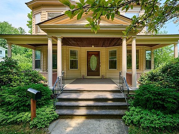 This well-maintained, stately home situated on the hill in Turners Falls boasts gorgeousarchitectural detail and a large 0.34-acre lot. The home features hardwood floors and beautifulwoodwork throughout, beveled glass window details, a lovely stained glass window above thestair landing, and a recently updated kitchen and bathrooms. The bedrooms are generously sizedwith plenty of closet space, and the walk-up attic provides more storage area or potentially moreliving space. The property also includes a spacious, detached two-car garage. Enjoy the view oftrees from the large front porch or relax on the screened-in porch or stone patio in the back yard.Schedule a showing of this must-see home today!